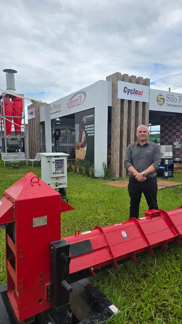 Durante o evento, a Varredora Automática da Cofelma ganhou destaque entre produtores e parceiros. O equipamento chamou atenção pela robustez e pela eficiência no processo de descarga de silos, especialmente no manejo pós-colheita.