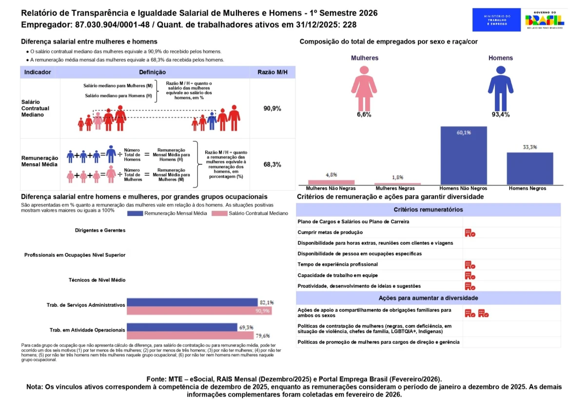 Relatório de Transparência e Igualdade Salarial de Mulheres e Homens - 1º Semestre 2026